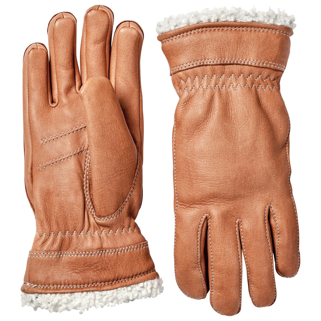 Elegant und warm gekleidet an den Händen unterwegs mit den Hestra Deerskin Primaloft Gloves!Diese Handschuhe bestehen aus hochwertigem Leder vom Rotwild und sind aufgrund der angepassten Schnittführung bereits ergonomisch vorgeformt. Eine Raffung am Handgelenk sorgt für guten Sitz und ist elastisch.Innen kommt ein weiches Fleece-Lining zum Einsatz, welches mit einer, leichten, aber warmen Kunstfaser-Isolierung aus hochwertigem Primaloft verbunden ist. Die Materialien garantieren Atmungsaktivität, Kälteschutz und eine sehr hohe Witterungsbeständigkeit (nicht dauerhaft wasserdicht). Das Leder ist enorm langlebig und abriebfest und kann bei Bedarf mit Wachs imprägniert werden, wodurch es weicher, elastischer und wasserabweisender wird.Der Bund ist am Saum eingefasst und mit einem weichen Besatz aus Lammfell versehen, der nicht nur angenehm auf der Haut liegt, sondern wie ein Pelzkragen an einer Kapuze dafür sorgt, dass kein Schnee und kalter Wind nach innen dringt!Die eleganten Deerskin Primaloft Handschuhe von Hestra sind sehr alltagstauglich, aber funktionell genug für den anspruchsvollen Einsatz am Berg!